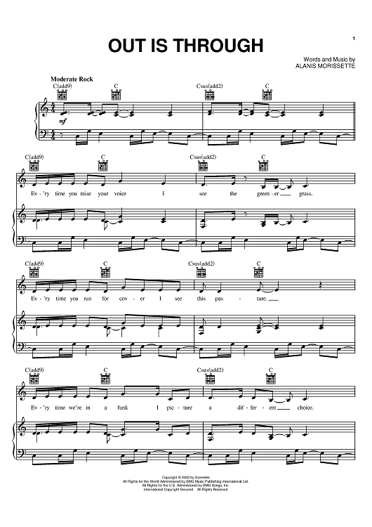 Digital Sheet Music for Out Is Through by Alanis Morissette scored for Piano/Vocal/Chords; id:380358