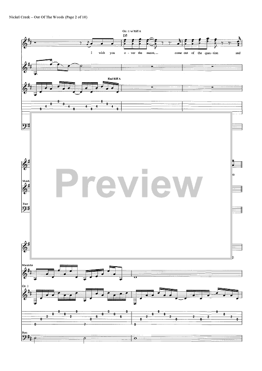 Digital Sheet Music for Out Of The Woods by Nickel Creek, Sinead Lohan scored for Guitar Tab/Vocal/Chords; id:444621