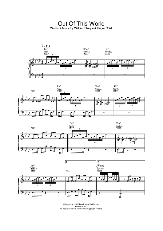 Digital Sheet Music for Out Of This World by Roger Odell, Shakatak, William Sharpe scored for Piano/Vocal/Chords; id:401963