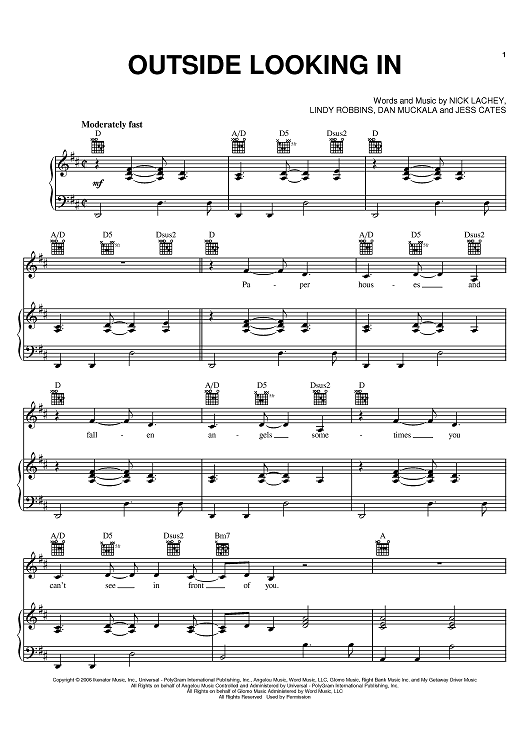 Digital Sheet Music for Outside Looking In by Nick Lachey, Lindy Robbins, Jess Cates, Dan Muckala scored for Piano/Vocal/Chords; id:401838