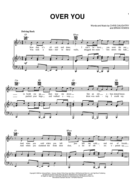Digital Sheet Music for Over You by Chris Daughtry, Daughtry, Brian Howes scored for Piano/Vocal/Chords; id:401155