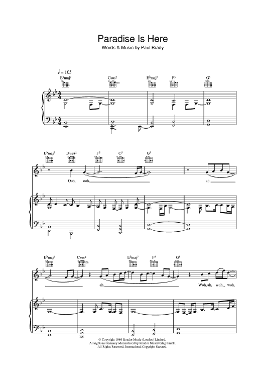 Digital Sheet Music for Paradise Is Here by Paul Brady scored for Piano/Vocal/Chords; id:398686