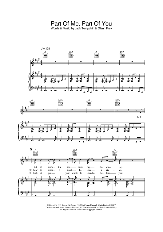Digital Sheet Music for Part Of Me, Part Of You by Jack Tempchin, Glenn Frey scored for Piano/Vocal/Chords; id:389290