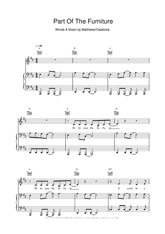Digital Sheet Music for Part Of The Furniture by Catatonia scored for Piano/Vocal/Chords; id:376685