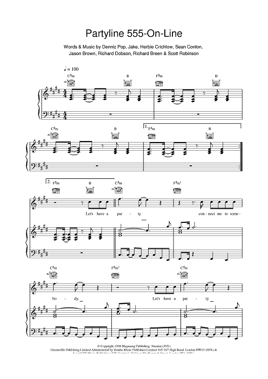 Digital Sheet Music for Partyline 555 On Line by Five scored for Piano/Vocal/Chords; id:376701