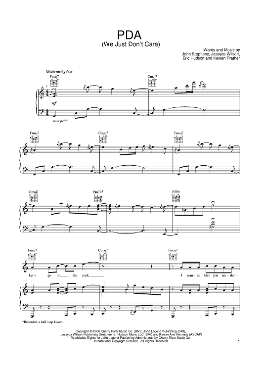 "PDA (We Just Don't Care)" Sheet Music by John Legend