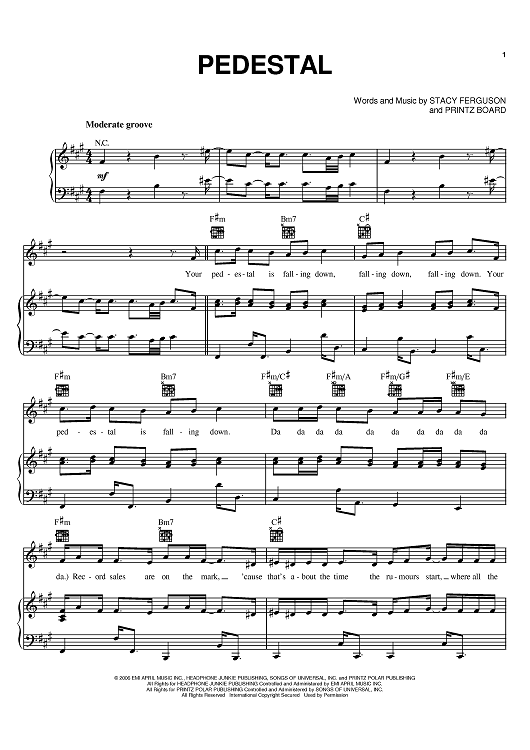 Digital Sheet Music for Pedestal by Printz Board, Fergie scored for Piano/Vocal/Chords; id:402244