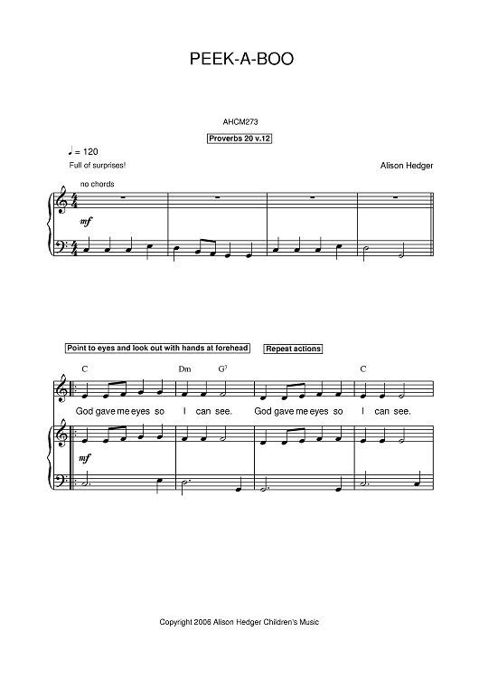 Digital Sheet Music for Peek-A-Boo by Alison Hedger scored for Piano/Vocal/Chords; id:391587