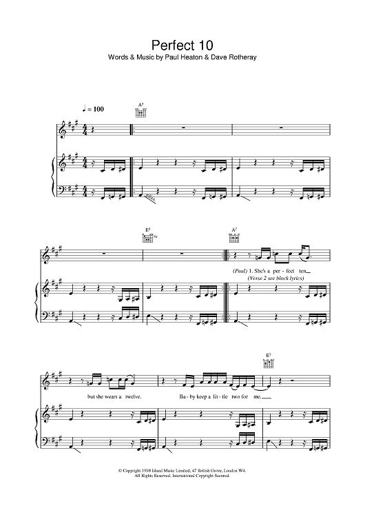 Digital Sheet Music for Perfect 10 by The Beautiful South scored for Piano/Vocal/Chords; id:376720