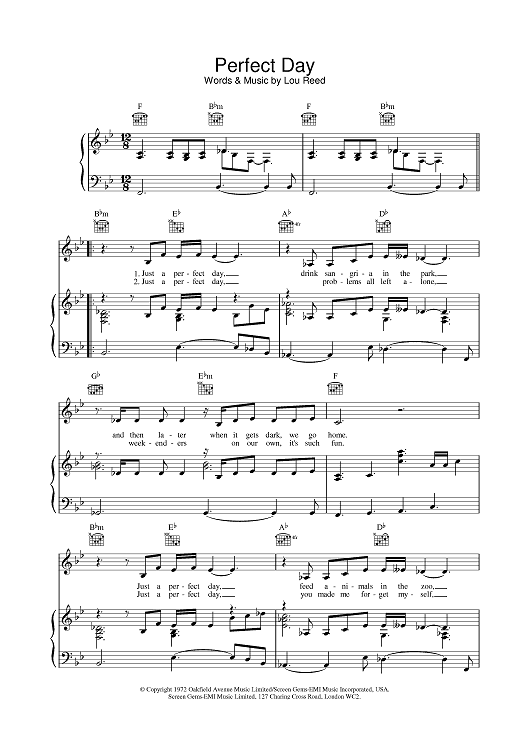 Digital Sheet Music for Perfect Day by Lou Reed scored for Piano/Vocal/Chords; id:379034