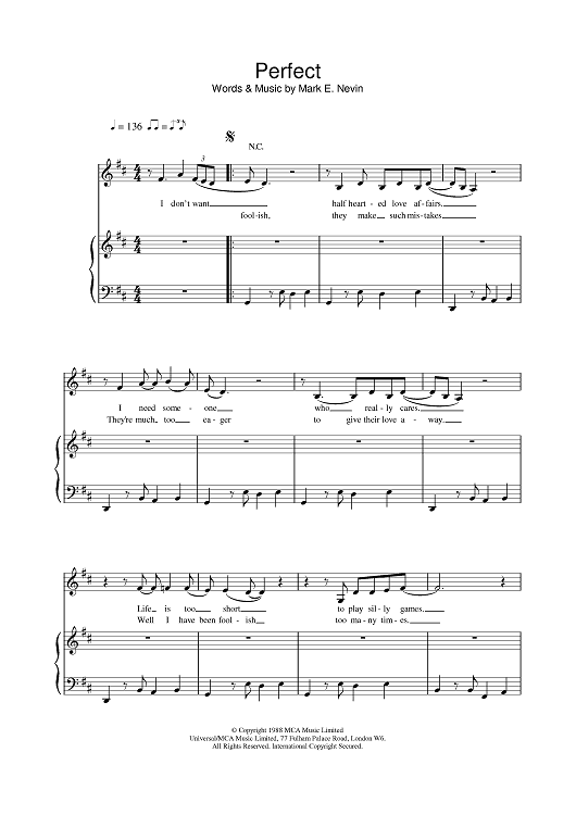 Digital Sheet Music for Perfect by Fairground Attraction, Mark E. Nevin scored for Piano/Vocal/Chords; id:375550