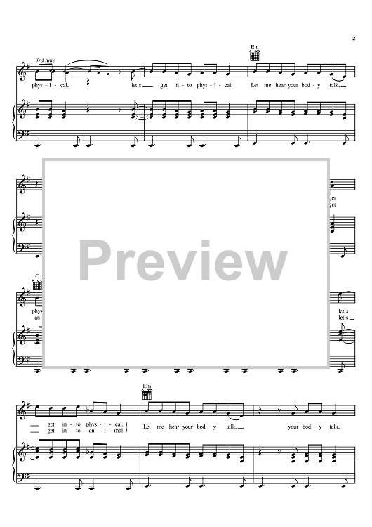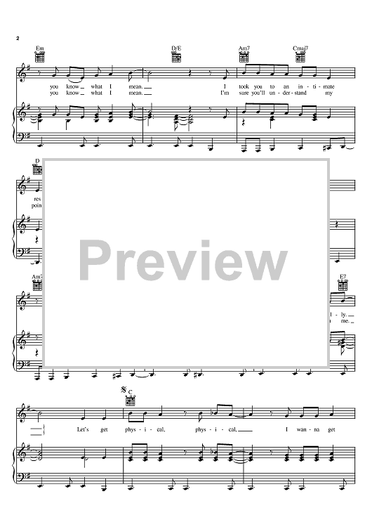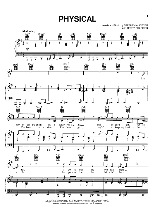Digital Sheet Music for Physical by Olivia Newton-John, Steve Kipner, Terry Shaddick scored for Piano/Vocal/Chords; id:394954