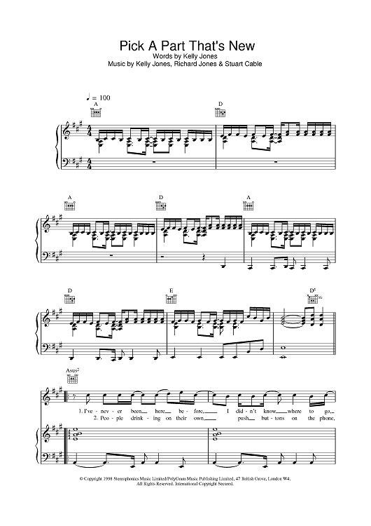 Digital Sheet Music for Pick A Part That's New by Stereophonics scored for Piano/Vocal/Chords; id:376796