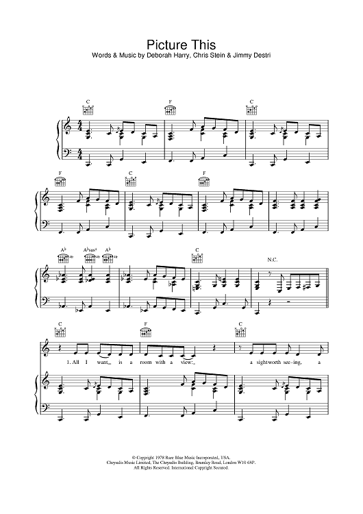 Digital Sheet Music for Picture This by Blondie, Deborah Harry, Chris Stein, Jimmy Destri scored for Piano/Vocal/Chords; id:382521