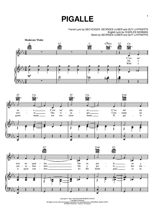 Digital Sheet Music for Pigalle by Geo Koger, Guy Luypaerts, Charles Newman, Georges Ulmer scored for Piano/Vocal/Chords; id:383798