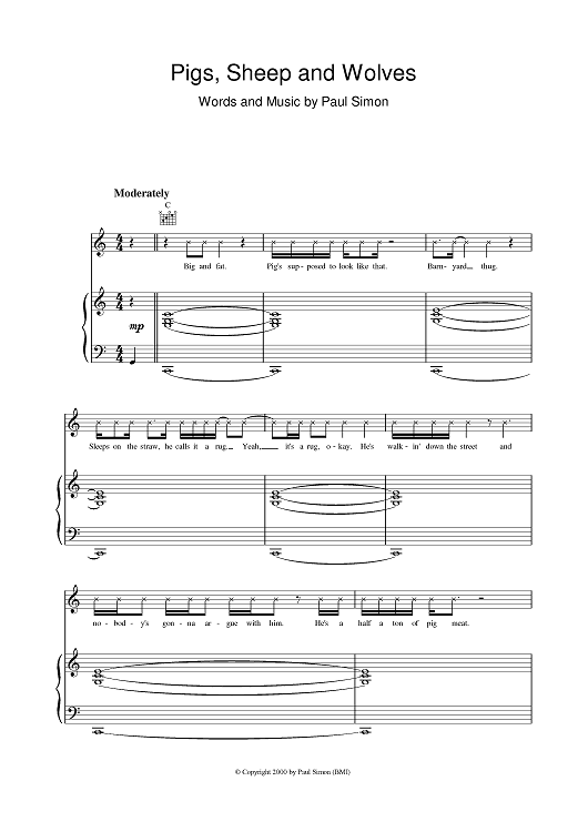 "Pigs, Sheep And Wolves" Sheet Music by Paul Simon