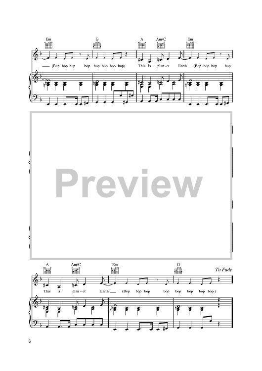 Digital Sheet Music for Planet Earth by Duran Duran scored for Piano/Vocal/Chords; id:389973