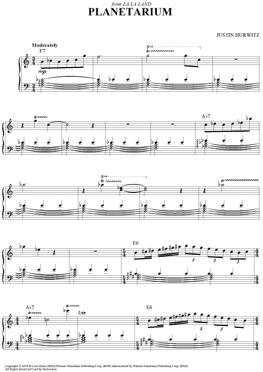 "Planetarium - from La La Land" Sheet Music by Justin Hurwitz