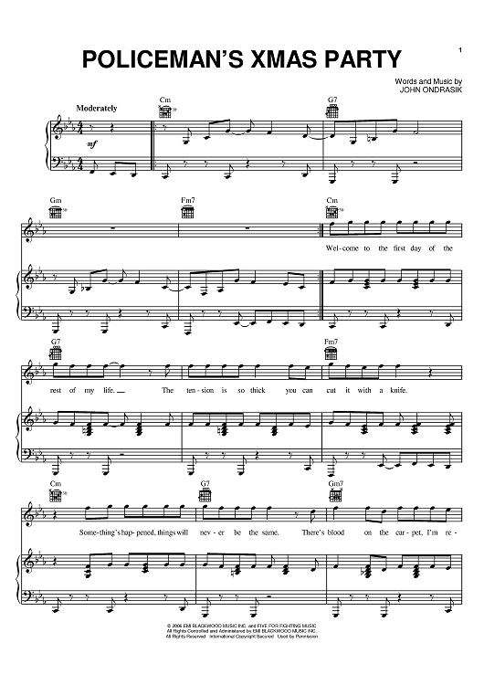 "Policeman's Xmas Party" Sheet Music by Five for Fighting