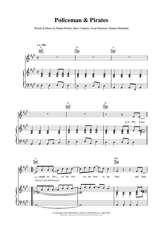 Digital Sheet Music for Policemen & Pirates by Steve Cradock, Simon Fowler, Oscar Harrison, Damon Minchella, Ocean Colour Scene scored for Piano/Vocal/Chords; id:379741