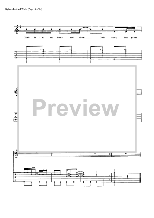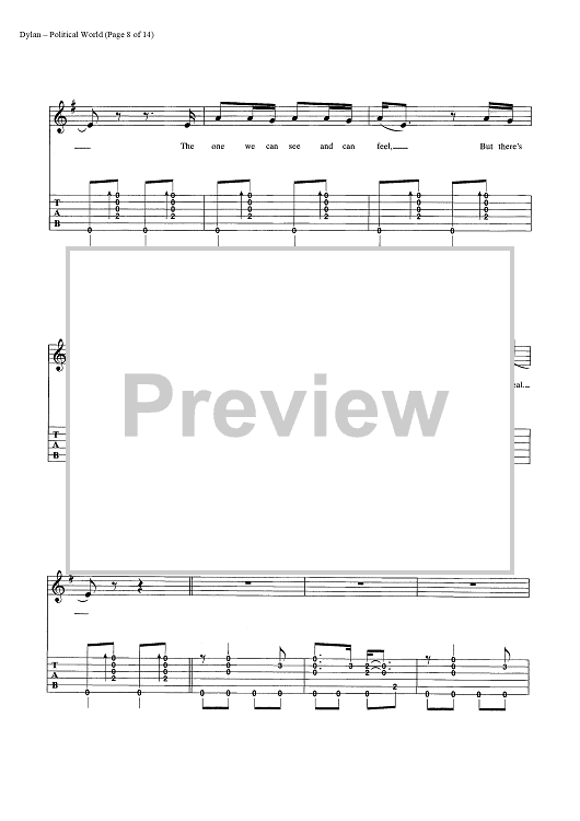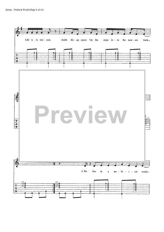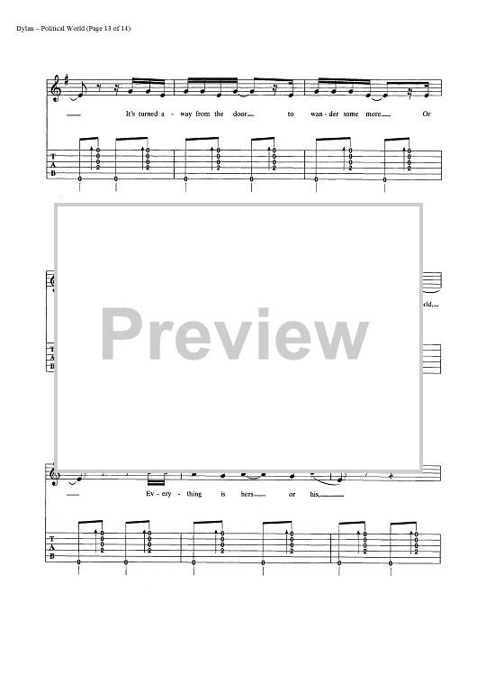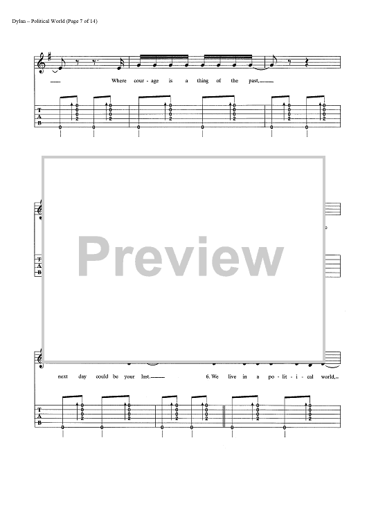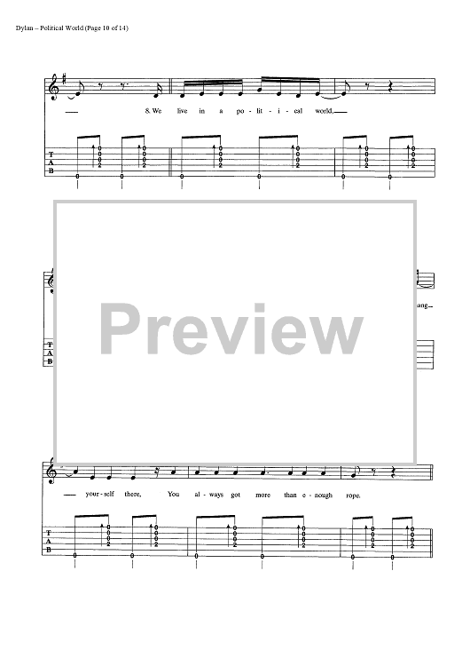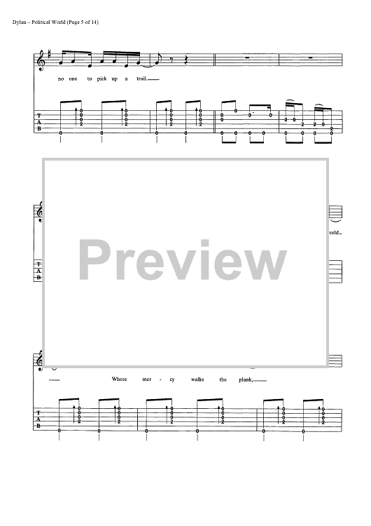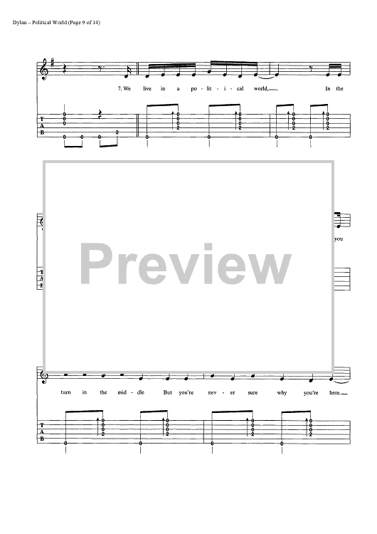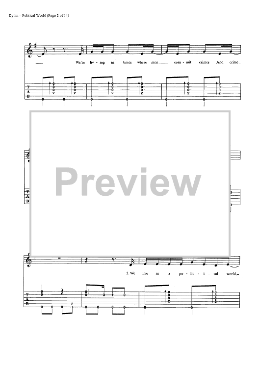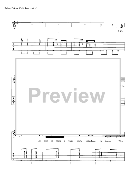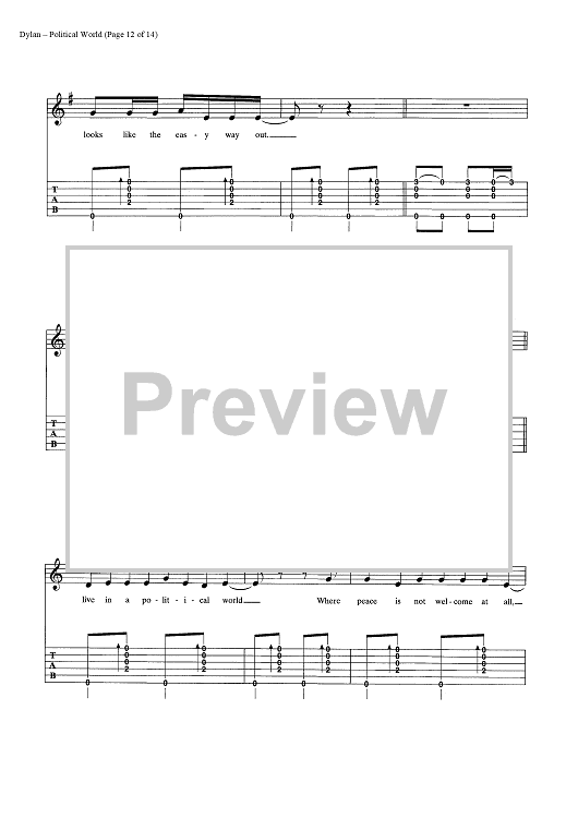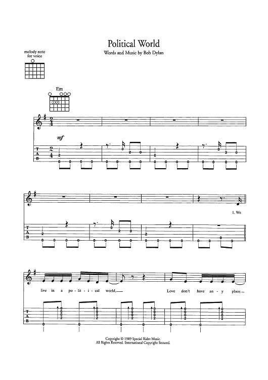 Digital Sheet Music for Political World by Bob Dylan scored for Guitar Tab/Vocal/Chords; id:445398