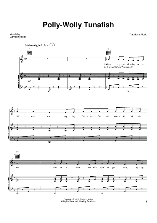 "Polly-Wolly Tunafish" Sheet Music by Garrison Keillor