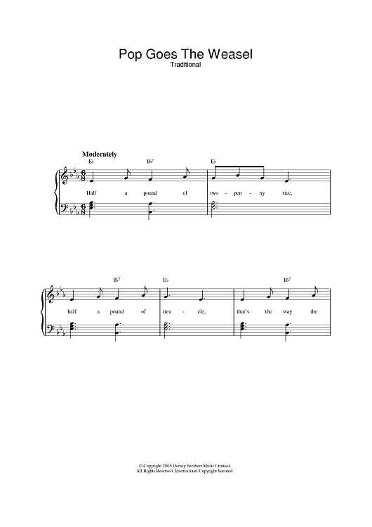 Digital Sheet Music for Pop Goes The Weasel by scored for Piano/Vocal/Chords; id:387566