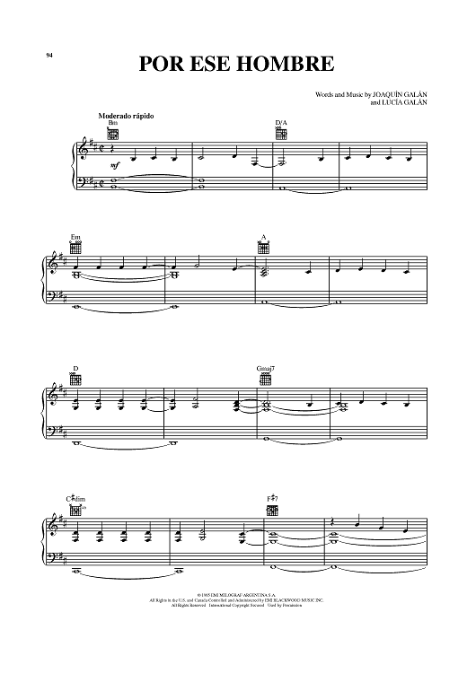 Digital Sheet Music for Por Ese Hombre by Joaquin Galan, Lucia Galan scored for Piano/Vocal/Chords; id:374757