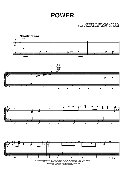 Digital Sheet Music for Power by Cedric Caldwell, Victor Caldwell, Smokie Norful scored for Piano/Vocal/Chords; id:381647
