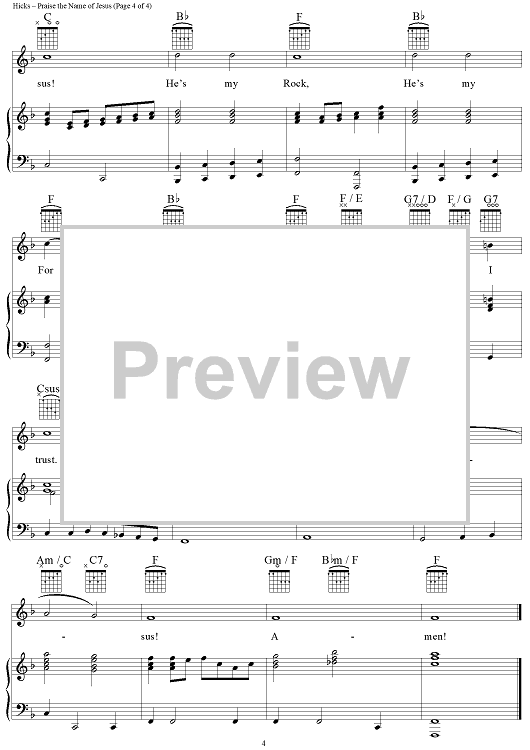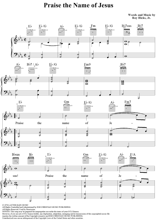 Digital Sheet Music for Praise the Name of Jesus by Roy Hicks Jr. scored for Piano/Vocal/Chords; id:95546