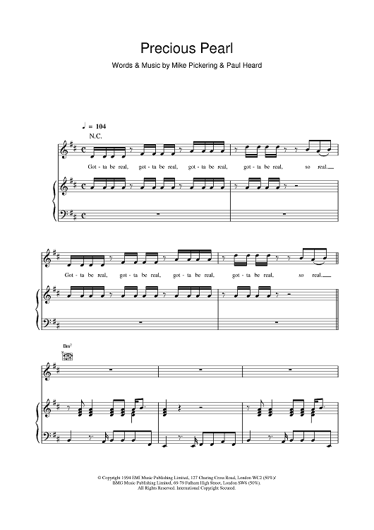 Digital Sheet Music for Precious Pearl by Paul Heard, M People, Mike Pickering scored for Piano/Vocal/Chords; id:382440