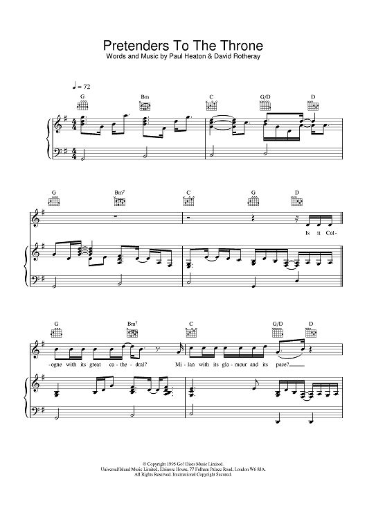 Digital Sheet Music for Pretenders To The Throne by The Beautiful South scored for Piano/Vocal/Chords; id:377517
