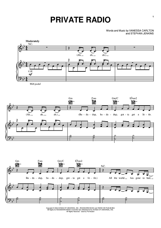 "Private Radio" Sheet Music by Vanessa Carlton