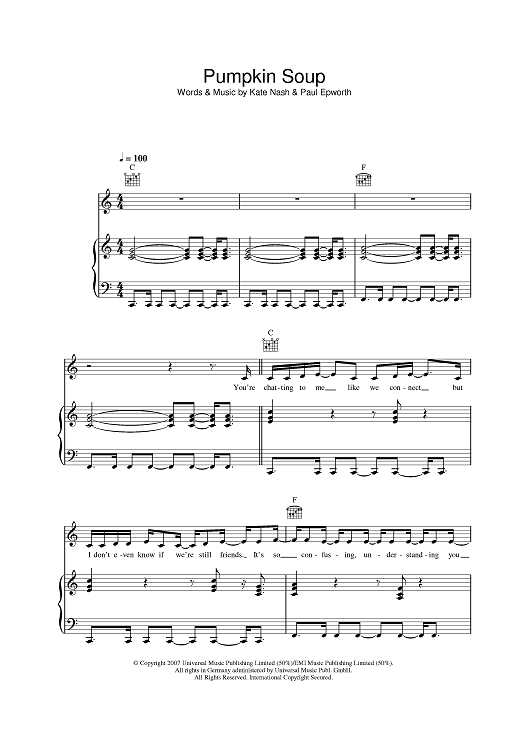 Digital Sheet Music for Pumpkin Soup by Kate Nash, Paul Epworth scored for Piano/Vocal/Chords; id:401927