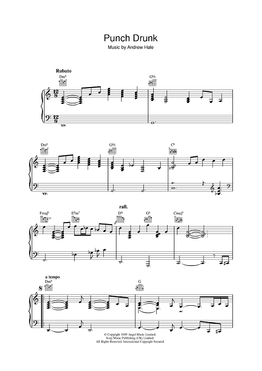 Digital Sheet Music for Punch Drunk by Andrew Hale, Sade scored for Piano/Vocal/Chords; id:402317
