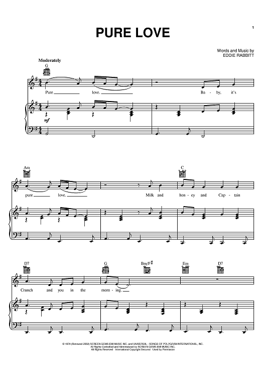 Digital Sheet Music for Pure Love by Ronnie Milsap, Eddie Rabbitt scored for Piano/Vocal/Chords; id:385799