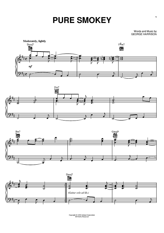 Digital Sheet Music for Pure Smokey by George Harrison scored for Piano/Vocal/Chords; id:384888
