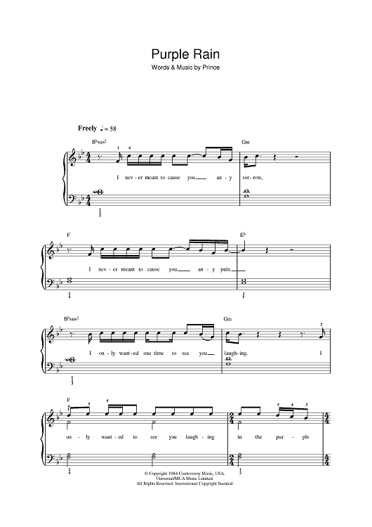 Digital Sheet Music for Purple Rain by Prince scored for Piano/Vocal/Chords; id:392789