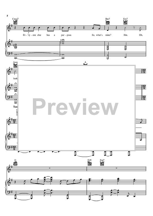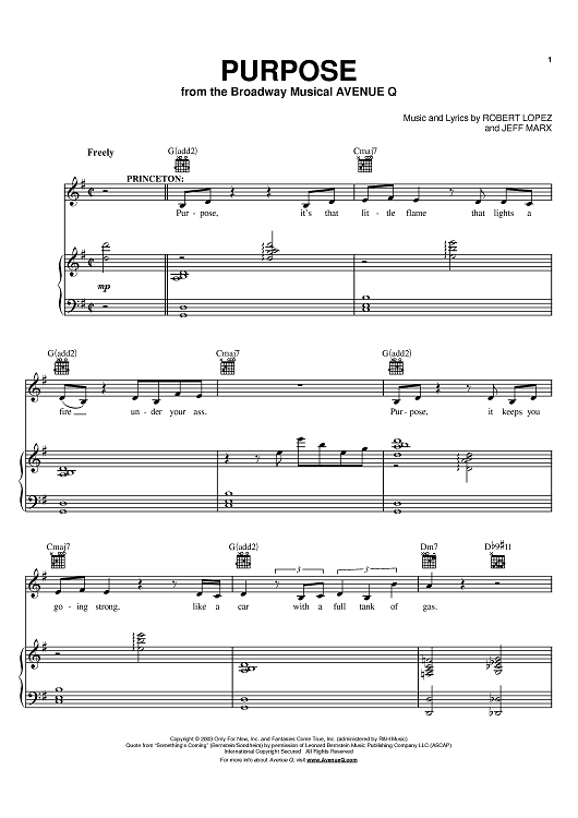 Digital Sheet Music for Purpose by Robert Lopez, Jeff Marx scored for Piano/Vocal/Chords; id:384650
