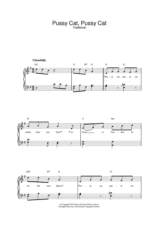 Digital Sheet Music for Pussy Cat, Pussy Cat by scored for Piano/Vocal/Chords; id:387568