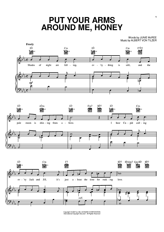 Digital Sheet Music for Put Your Arms Around Me, Honey by Glenn Miller, Albert von Tilzer, Junie McCree scored for Piano/Vocal/Chords; id:397266