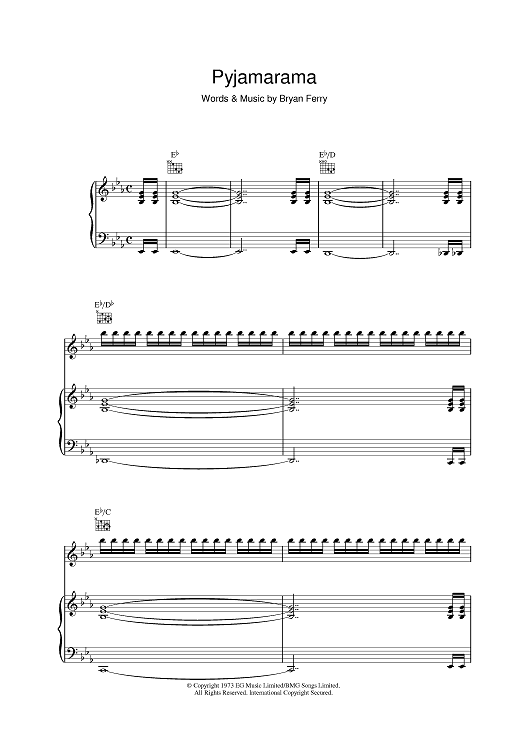 Digital Sheet Music for Pyjamarama by Bryan Ferry, Roxy Music scored for Piano/Vocal/Chords; id:392165