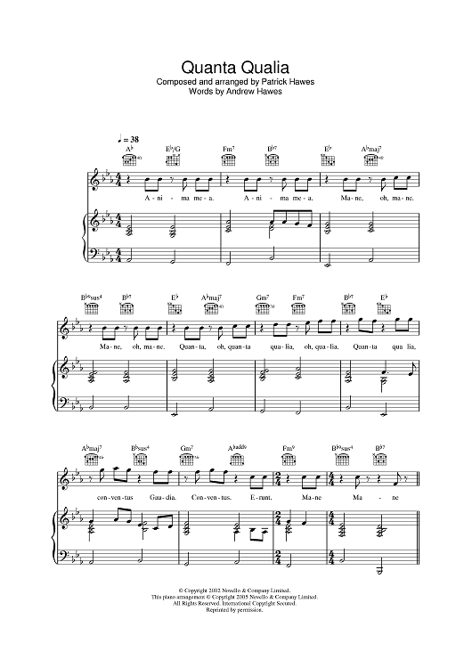 Digital Sheet Music for Quanta Qualia by Andrew Hawes, Patrick Hawes, Hayley Dee Westenra scored for Piano/Vocal/Chords; id:389277