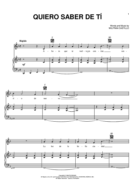 Digital Sheet Music for Quiero Saber De Ti by Wilfran Castillo, Grupo Montez De Durango, Bienvenido Rodriguez scored for Piano/Vocal/Chords; id:383120