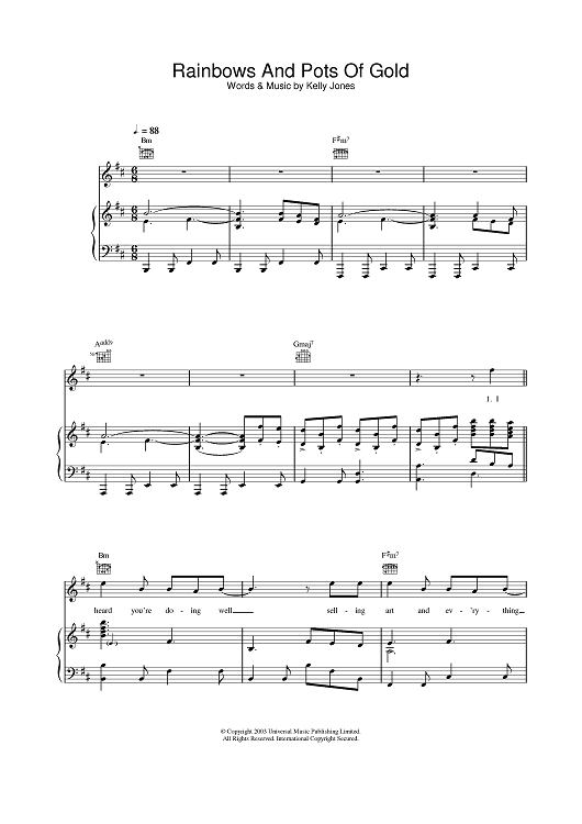 Digital Sheet Music for Rainbows And Pots Of Gold by Stereophonics scored for Piano/Vocal/Chords; id:378093