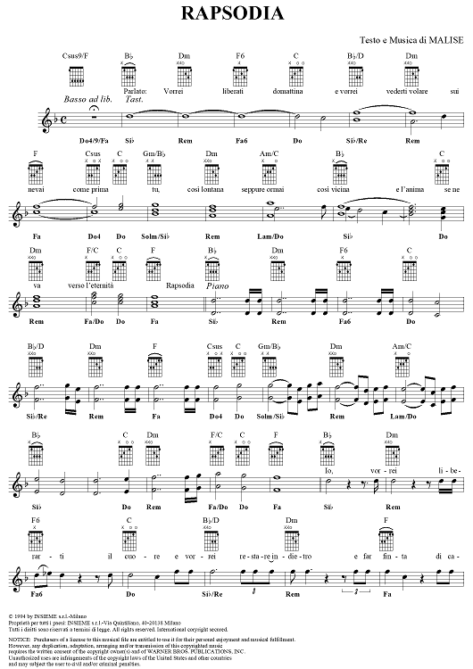 Digital Sheet Music for Rapsodia by Andrea Bocelli, Malise scored for Piano/Vocal/Chords; id:251568