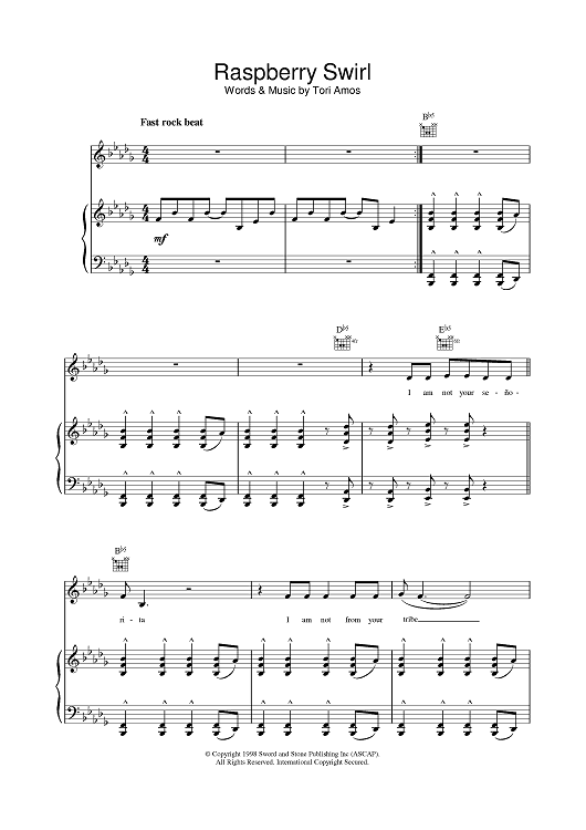 Digital Sheet Music for Raspberry Swirl by Tori Amos scored for Piano/Vocal/Chords; id:376712