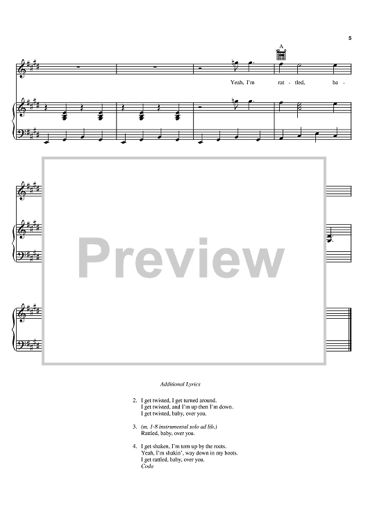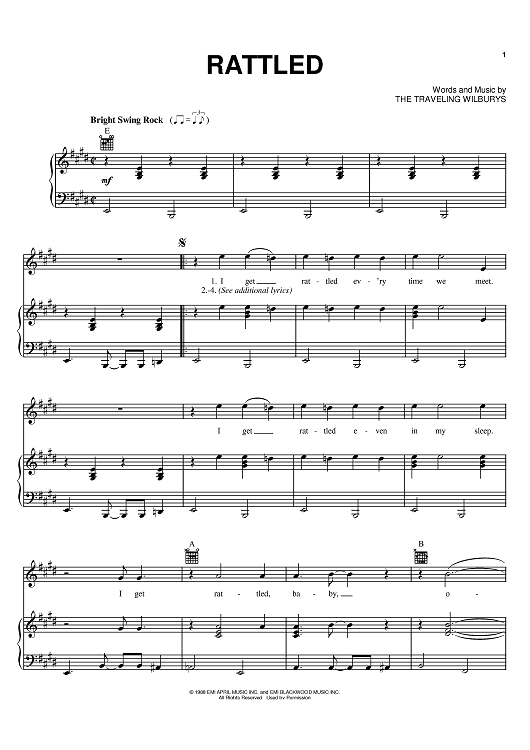 Digital Sheet Music for Rattled by Roy Orbison, Bob Dylan, George Harrison, Tom Petty, Jeff Lynne, The Traveling Wilburys scored for Piano/Vocal/Chords; id:402450