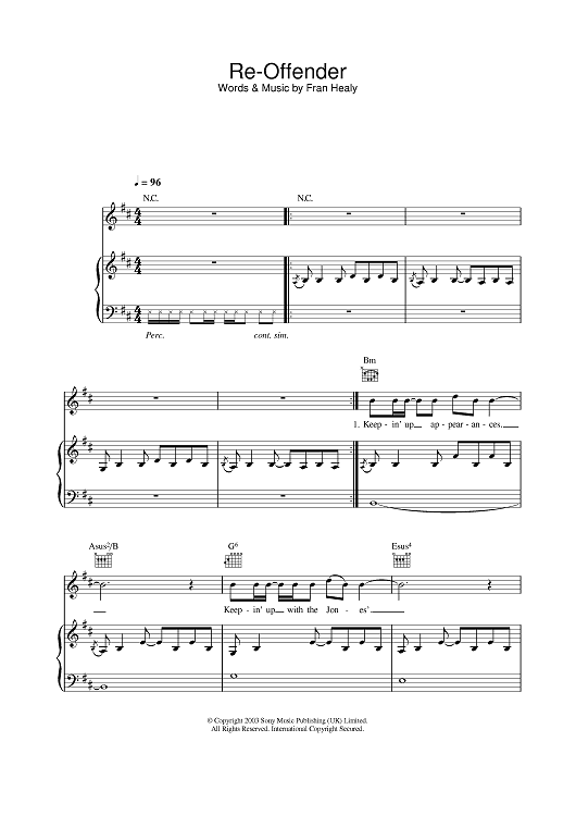 Digital Sheet Music for Re-Offender by Travis scored for Piano/Vocal/Chords; id:378161