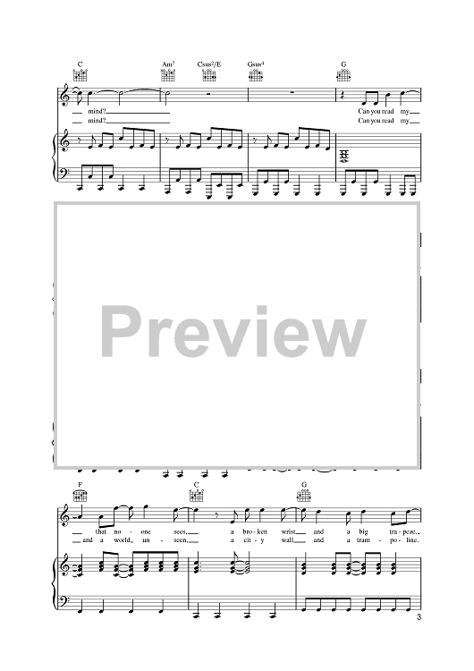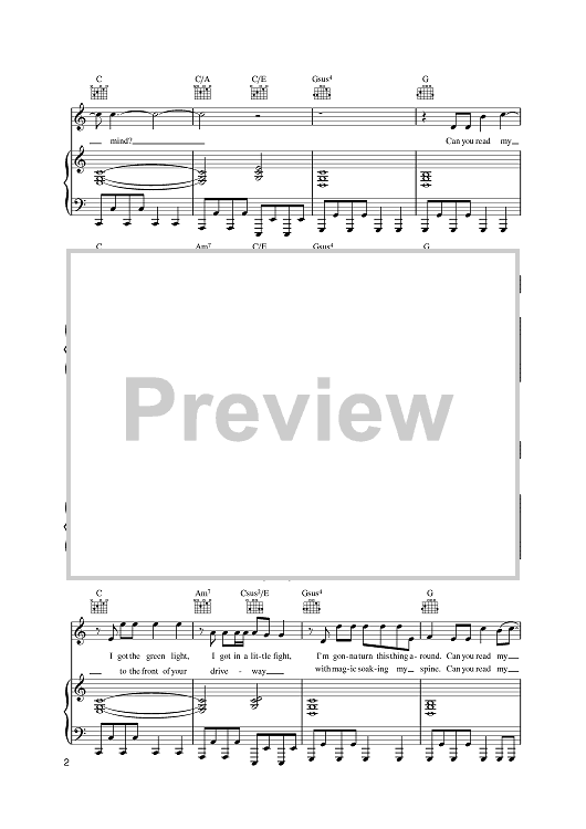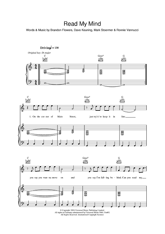 Digital Sheet Music for Read My Mind by Brandon Flowers, Dave Keuning, The Killers, Mark Stoermer, Ronnie Vannucci Jr. scored for Piano/Vocal/Chords; id:401413